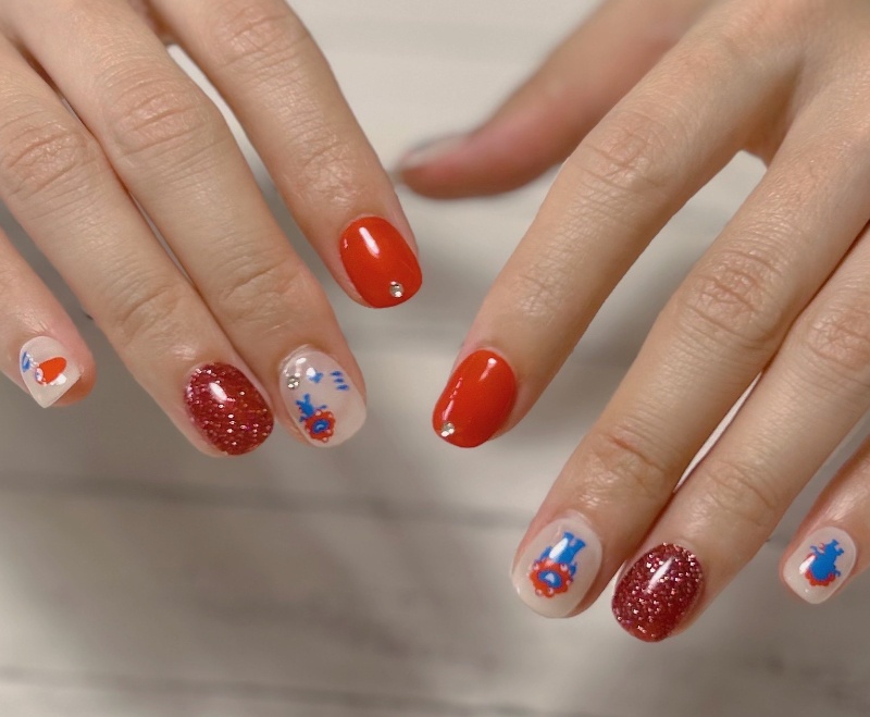 ネイルチップをオーダーいただき、休みの日や特別な日にネイルを楽しんでいただいてるお客様。
